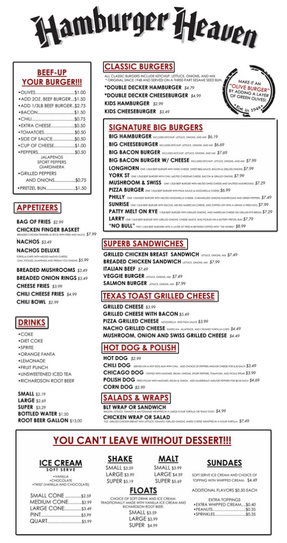 Hamburger Heaven 2020 Pick up / Carry out Menu